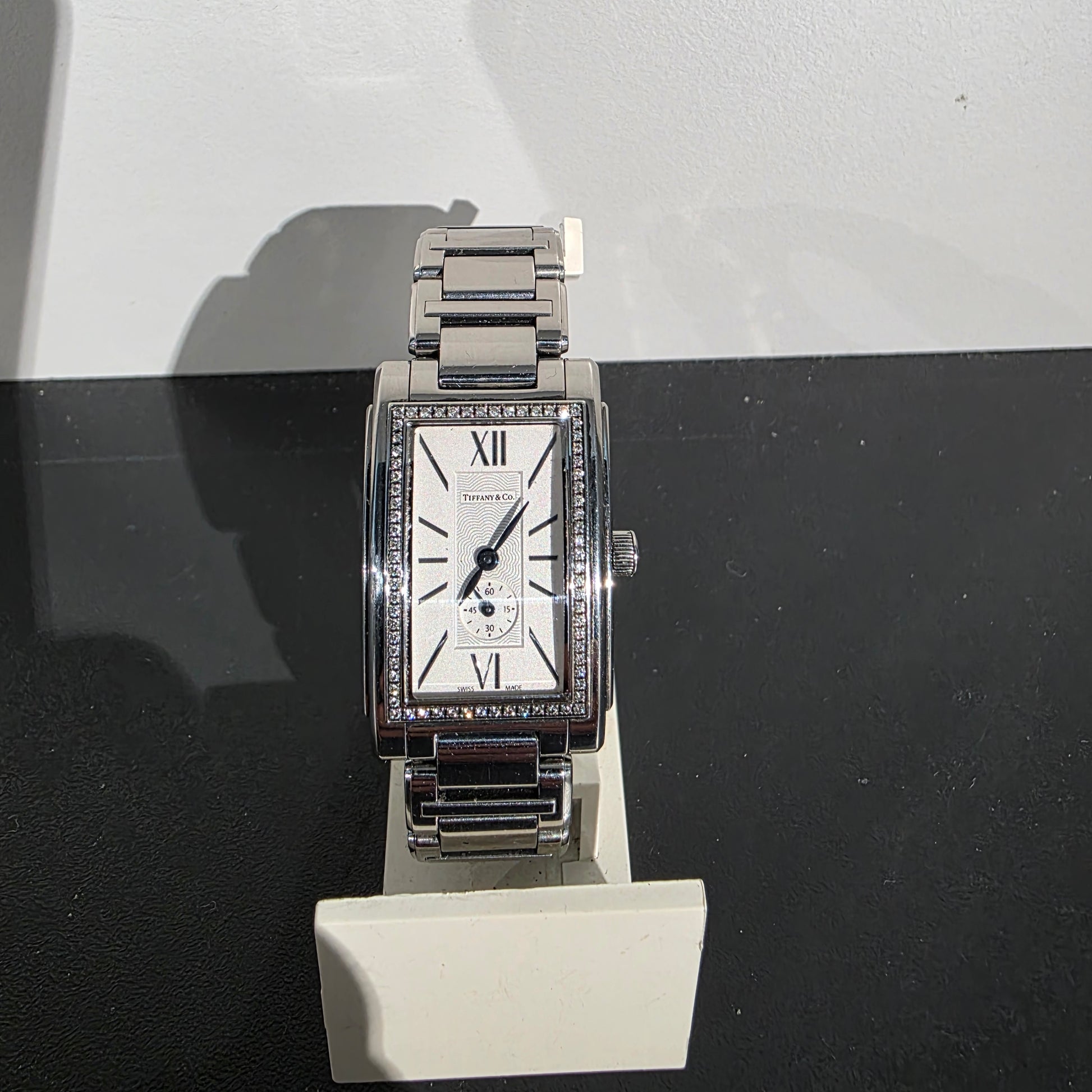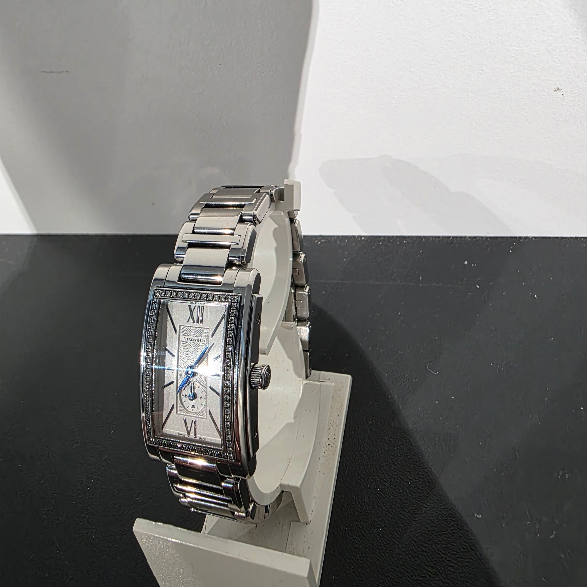 Montre à quartz Tiffany & Co Grand Resonator de 22 mm avec lunette en diamant en acier inoxydable